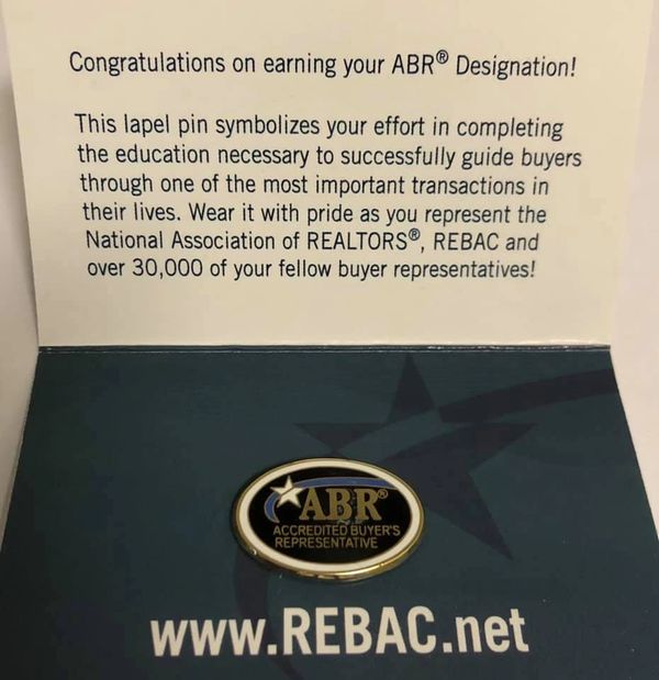 **ABR (Accredited Buyer’s Representative) this designation encompasses specialized information and programs to elevate skills when working with buyers, and provides marketing tools and resources for an additional competitive edge.