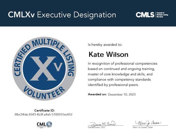 **CMLXv (Certified MLS Management Specialist) is an executive designation given by CMLS in recognition of professional competencies based on continued and ongoing training, mastery of core knowledge and skills, and compliance with competency standards identified by professional peers.